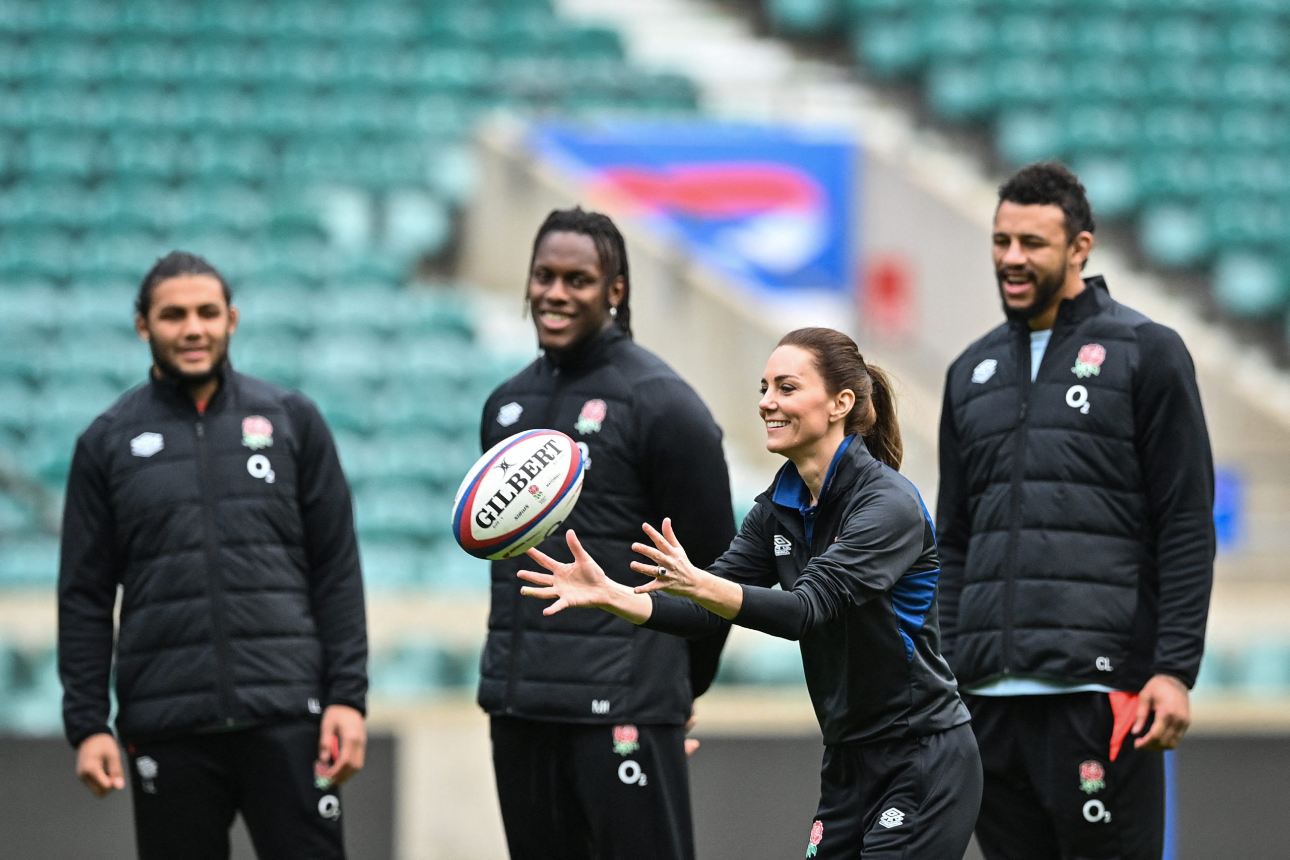 Catherine, de hertogin van Cambridge, heeft op haar eerste dag als beschermvrouwe van de Rugby Football Union direct laten zien wat ze in huis heeft. De 40-jarige vrouw van prins William trok haar trainingspak aan en deed mee met een rugbytraining in Twickenham.