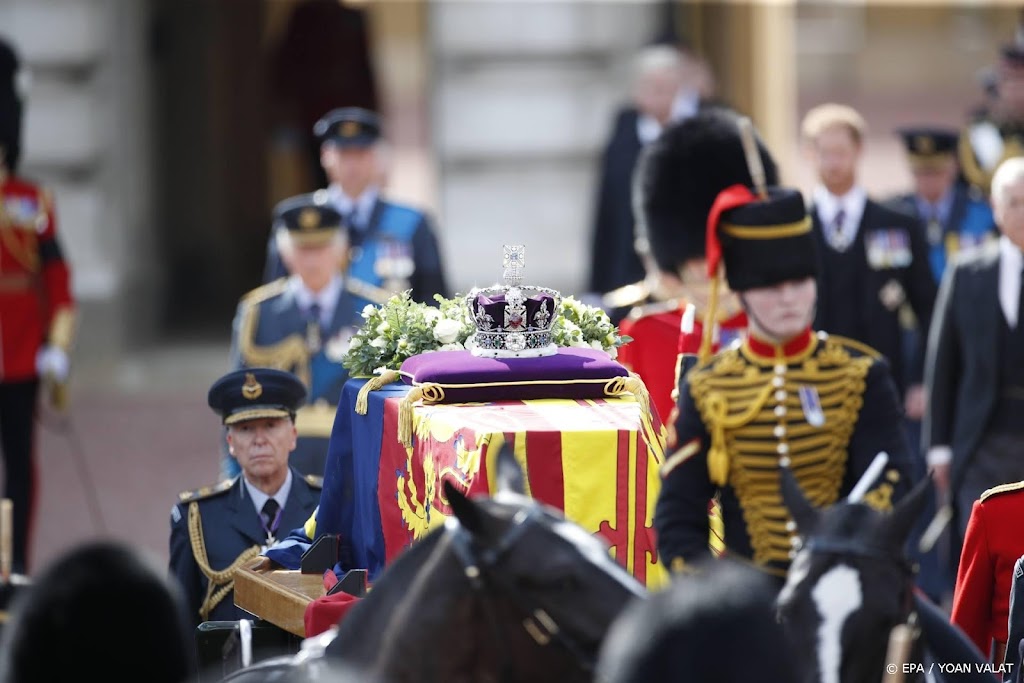 De kist met het lichaam van koningin Elizabeth is in Londen aangekomen in Westminster Hall, de plek waar het publiek afscheid kan nemen van de overleden vorstin. Langs de route vanaf Buckingham Palace stonden vele duizenden mensen om de kist te bekijken en de laatste eer te bewijzen aan Elizabeth II.