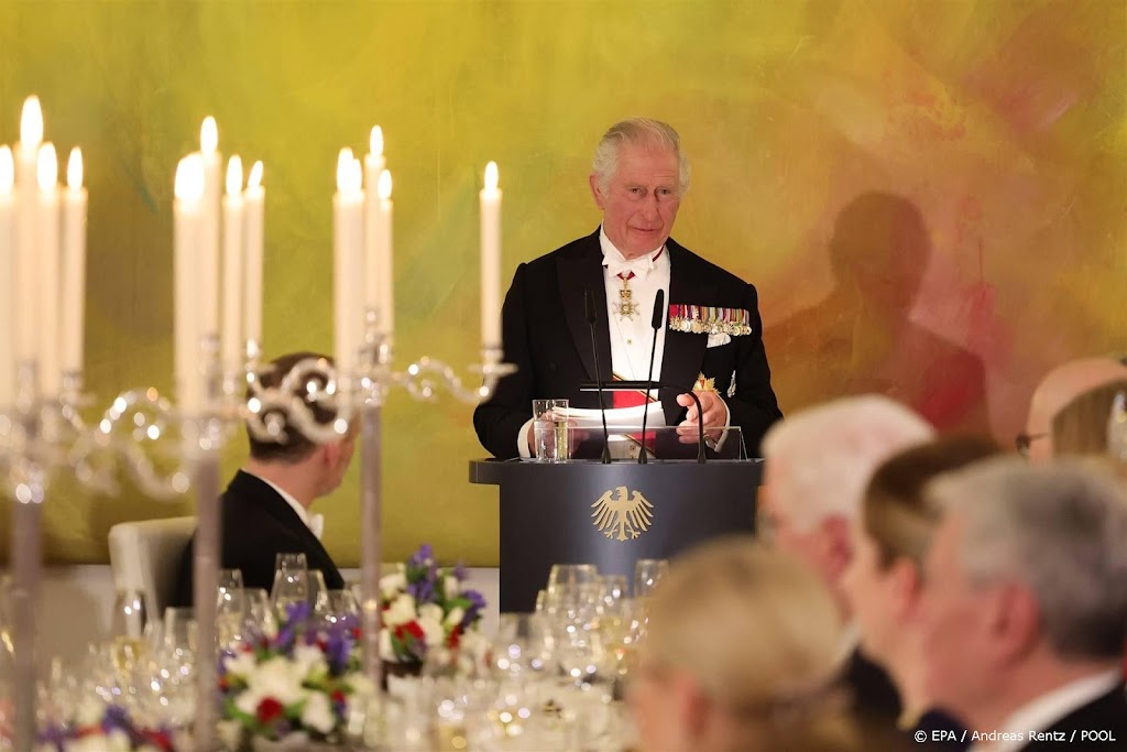 Koning Charles is vele malen in Duitsland geweest en heeft daar mooie herinneringen aan. De Britse vorst denkt met “veel plezier” terug aan al die reizen, zei hij woensdagavond in een toespraak tijdens een staatsbanket in Berlijn. De ceremonie werd gehouden op slot Bellevue, waar de Duitse bondspresident Frank-Walter Steinmeier woont. Charles en koningin-gemalin Camilla zijn tot en met vrijdag op staatsbezoek in Duitsland.