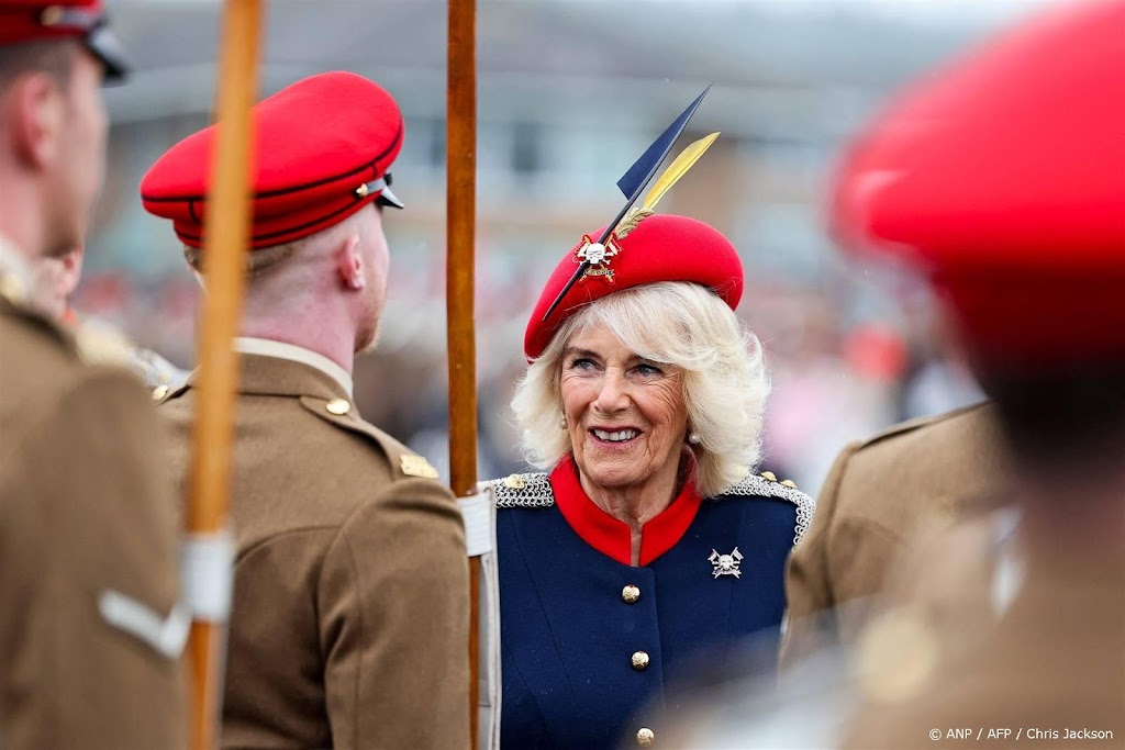 De Britse koningin Camilla heeft voor het eerst militairen van de Royal Lancers ontmoet sinds ze kolonel is van het regiment. De vorstin bracht een bezoek aan de Catterick-barakken in het noorden van Engeland, waar ze de aanwezige militairen toesprak.
