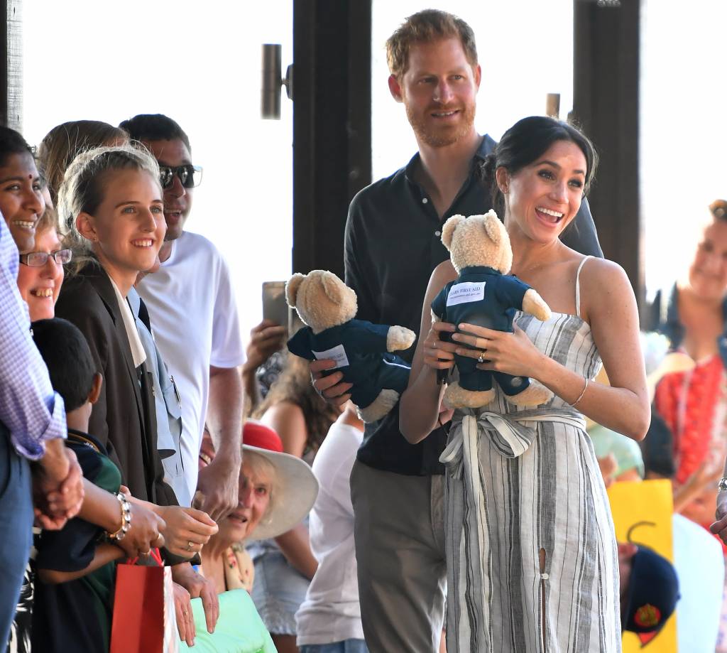 Ook haar echtgenoot prins Harry was deels getooid in traditionele kledij, waarvan bloemen een belangrijk onderdeel vormen. Met die bloemen was het woord Tonga gespeld. De uitdossing leidde tot enthousiaste reacties van het publiek in Tonga. Het paar droeg de outfit over hun normale kleding heen.