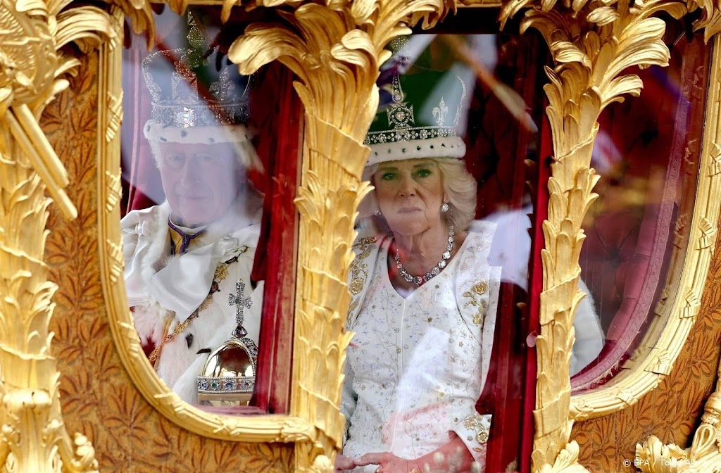 Buckingham Palace heeft twee nieuwe foto’s gedeeld van koning Charles en koningin Camilla die zijn genomen op de kroningsdag. Op de eerste foto staat de koning samen met prins William en prins George, op de tweede staan Charles, Camilla samen met haar metgezellen en de pages, onder wie prins George. Een van de metgezellen is Camilla’s zus Annabel.