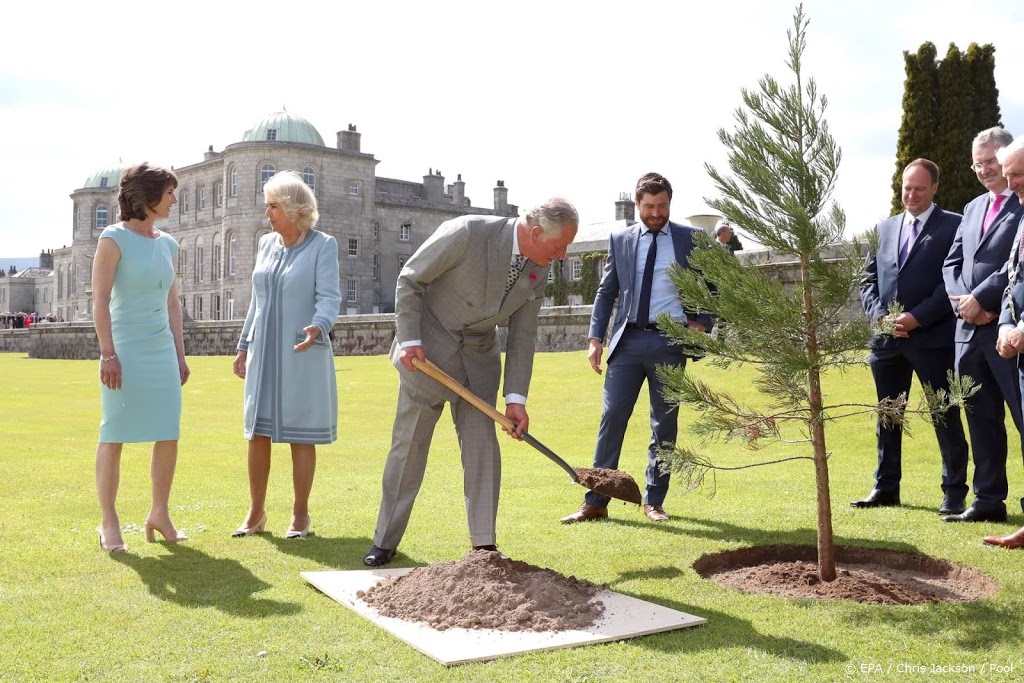 Prins Charles heeft maandag laten zien dat hij behoorlijk groene vingers heeft. De Brit plantte een boom bij de Powerscourt House and Gardens in het Ierse Enniskerry.