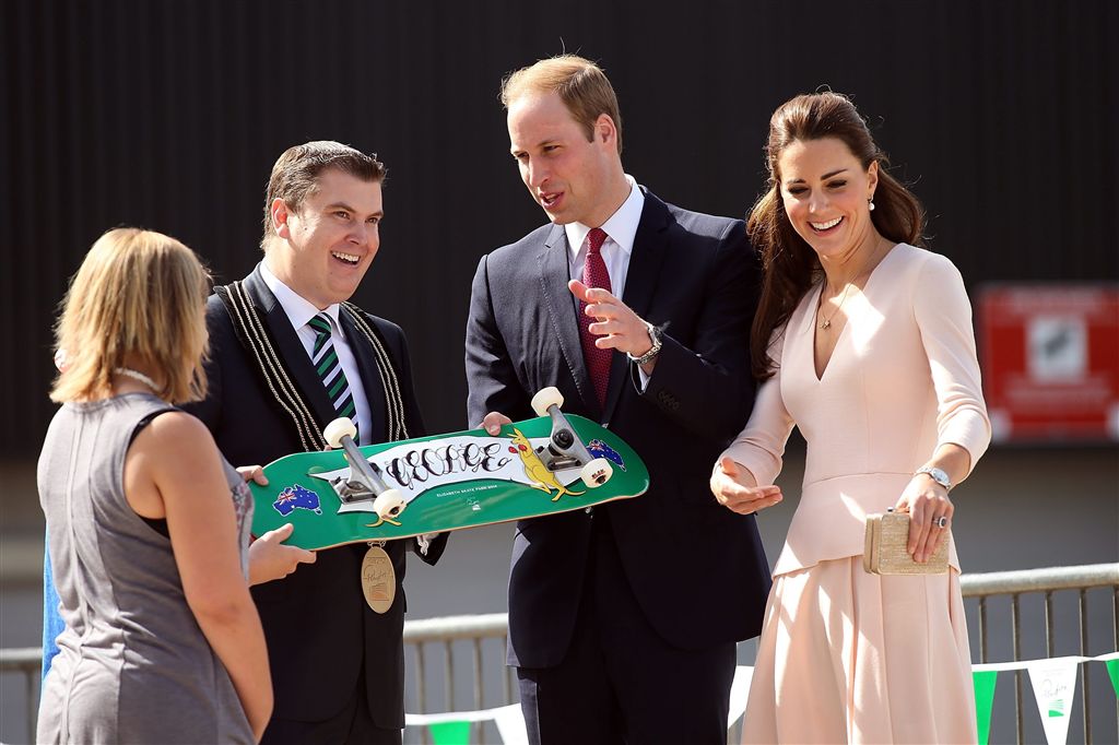 William en Catherine kregen het cadeau tijdens een bezoek aan een skatepark. Op het board staan de Australische vlag en twee kangoeroes afgebeeld. In het park hadden zich veel mensen verzameld om het stel te zien. Toen William het board kreeg, riep de menigte hem toe dat hij het even mocht proberen, maar dat aanbod sloeg de zoon van prins Charles af.