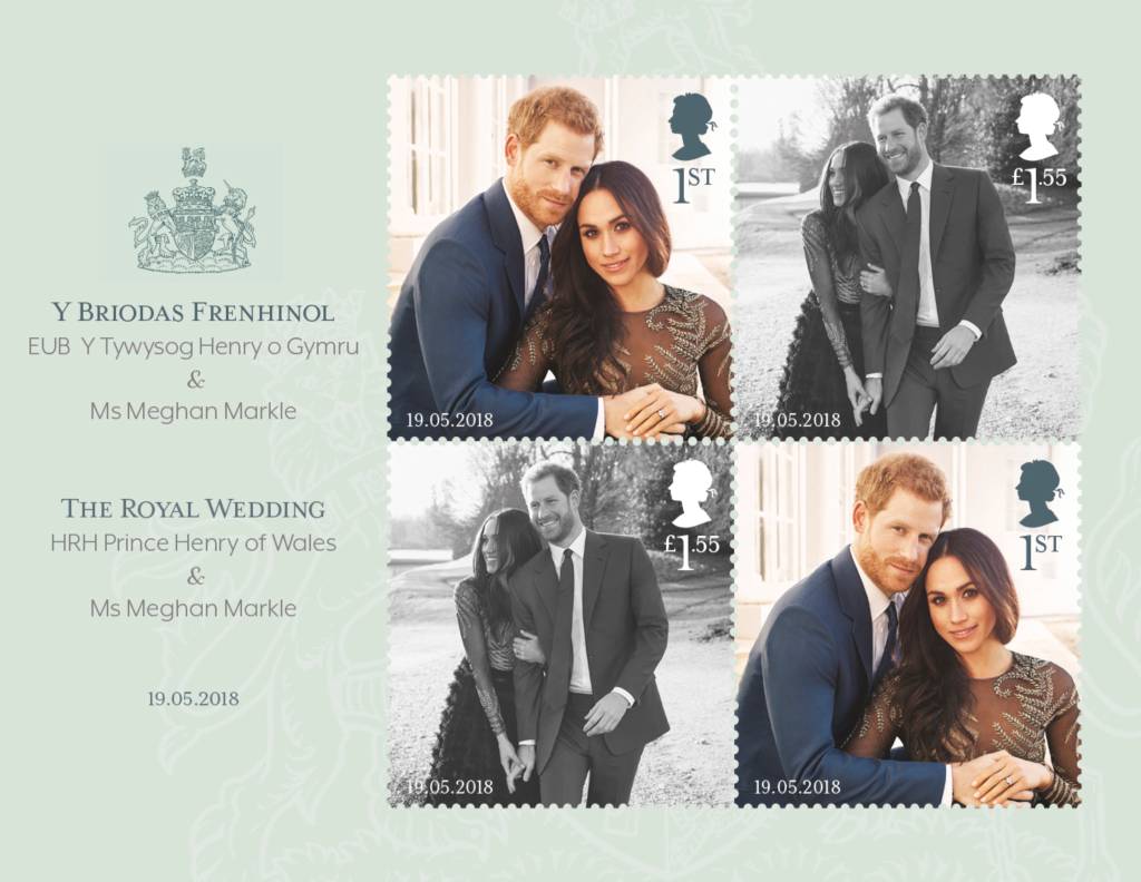 Linksonder op de postzegels staat de trouwdatum 19-5-2018. Het traditionele profiel van koningin Elizabeth staat in de rechterbovenhoek. Het ontwerp van de postzegels is goedgekeurd door zowel Elizabeth als het bruidspaar. De set kost 4,54 Britse pond en is vanaf zaterdagochtend verkrijgbaar op 7000 verkoopadressen.