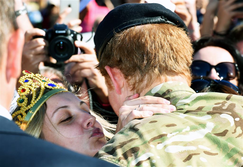 Sommigen droegen pamfletten met de tekst Trouw met me Harry, anderen kregen de kans selfies met de prins te maken. Een van de aanwezigen, uitgedost met een kroontje, slaagde erin de prins te verleiden tot een zoen. Op het Twitteraccount van Kensington Palace zijn foto’s en een filmpje te zien van de hartelijke ontvangst, waar Harry de Australiërs erg dankbaar voor is.