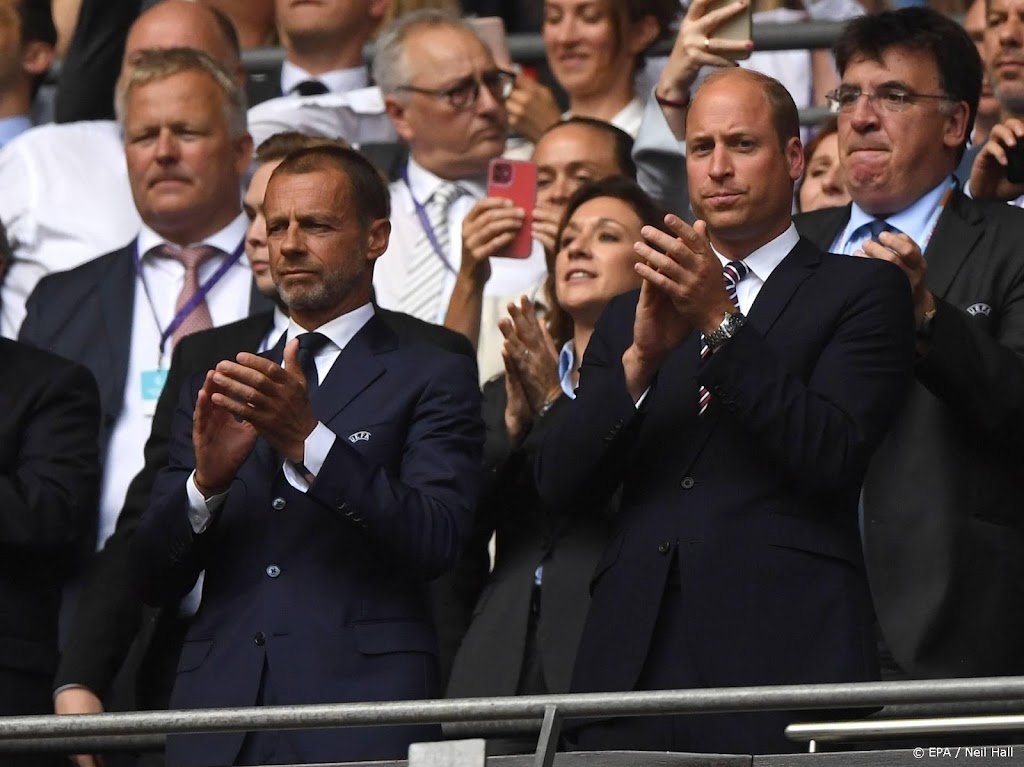 Prins William is zonder zijn familie bij de finale van het EK voetbal voor vrouwen in het Londense Wembley Stadium. Op beelden is te zien dat de prins op de tribune zit, omringd door andere personen. De Britse voetbalsters spelen zondagavond de beslissende wedstrijd tegen Duitsland in het stadion.