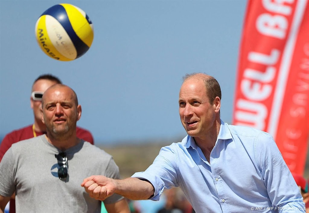 Prins William heeft donderdag op het strand van Newquay, in het Engelse graafschap Cornwall, kort meegedaan aan een potje volleybal. De prins van Wales serveerde de bal meerdere keren over het net en volgens aanwezige verslaggevers lukte het de tegenstanders niet de bal weer terug te slaan.