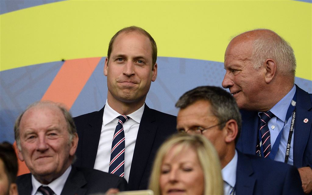 Prins William zat maandagavond op de tribune in het Franse Saint-Étienne. Daar zag hij een doelpuntloze EK-wedstrijd tussen Slowakije en Engeland.