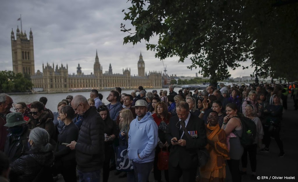 Wie de kist van Queen Elizabeth wil zien staat in de nacht van donderdag op vrijdag in Londen minimaal 11,5 uur in de rij die inmiddels strekt over een afstand van ruim 7,8 kilometer. De Britse overheid houdt mensen via YouTube op de hoogte van de actuele wachttijd en lengte van de gigantische wachtrij richting Westminster Hall, de plek waar de Queen sinds woensdag ligt opgebaard. De uitvaart van de vorige week overleden Britse koningin is maandag.