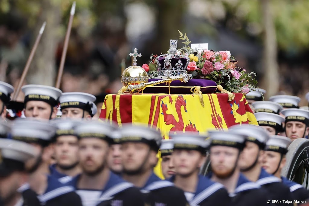 De uitvaart van de Britse koningin Elizabeth is maandag in ons land bekeken door ruim anderhalf miljoen mensen. De uitzendingen van de NOS op NPO 1 en NPO 2 waren daarbij met 1.455.000 en 1.430.000 het meest in trek, blijkt uit de cijfers van Stichting Kijkonderzoek (SKO). Naar de registratie van de uitvaart op RTL Z keken 61.000 mensen.