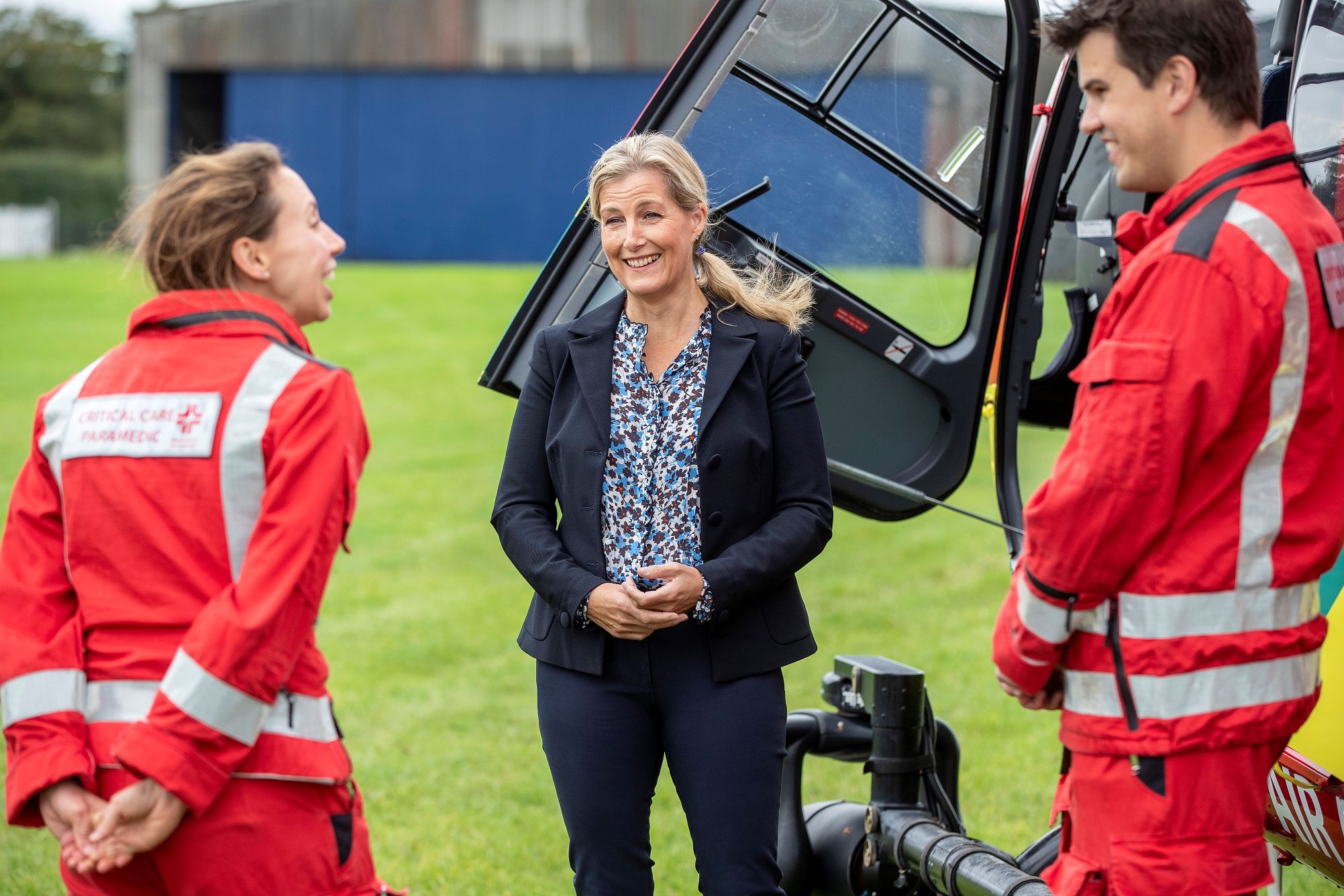 Het bezoek van de gravin stond in het teken van het 21-jarig bestaan van de Thames Valley Air Ambulance. Ze sprak er met medewerkers en mocht in een van de helikopters een kijkje nemen.