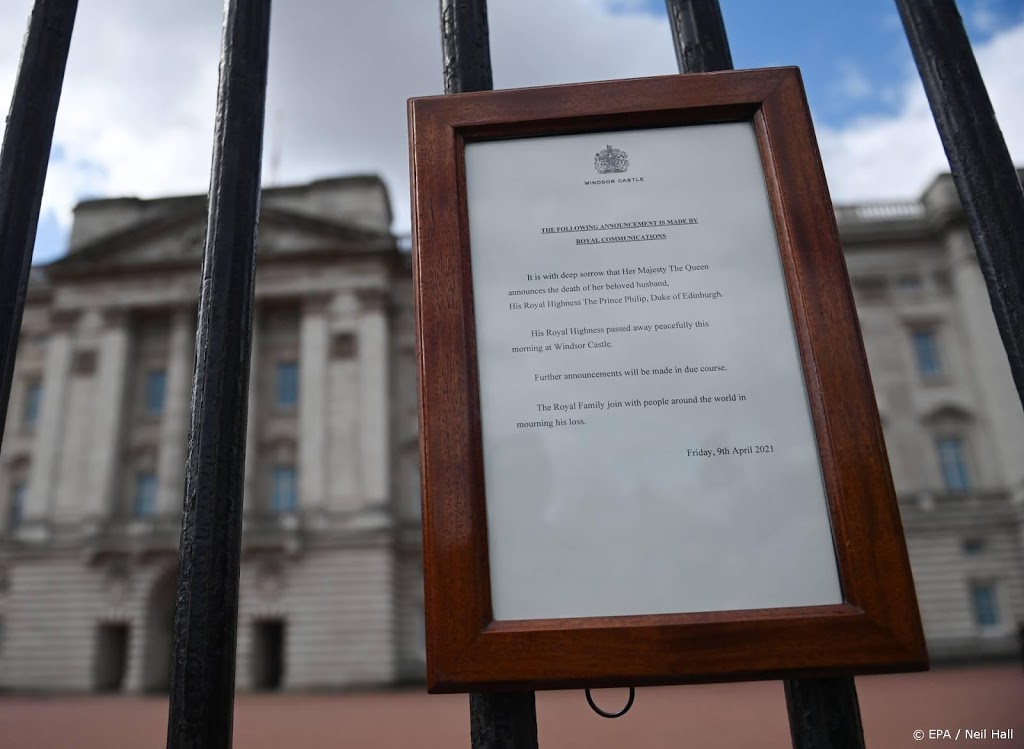 Het overlijden van de Britse prins Philip is ook op traditionele wijze bekendgemaakt bij Buckingham Palace. De verklaring waarin koningin Elizabeth “met groot verdriet” het overlijden van haar man bekendmaakt werd aan het hek gehangen. De eerste bloemen liggen al bij Buckingham Palace.