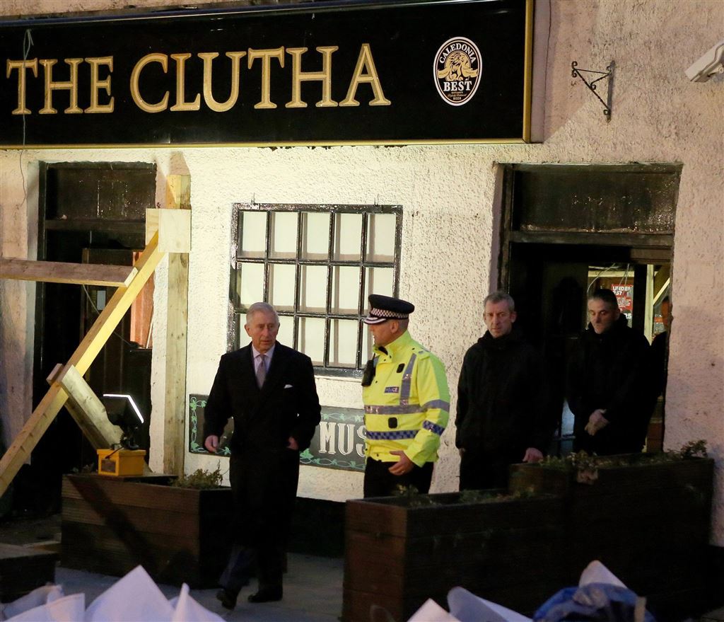 Bij de helikoptercrash kwamen tien mensen om het leven. Naast de dodelijk slachtoffers vielen er ook 32 gewonden die in de pub een optreden van een band bijwoonden. Charles bezocht een week later de rampplek en sprak er onder meer met reddingswerkers.