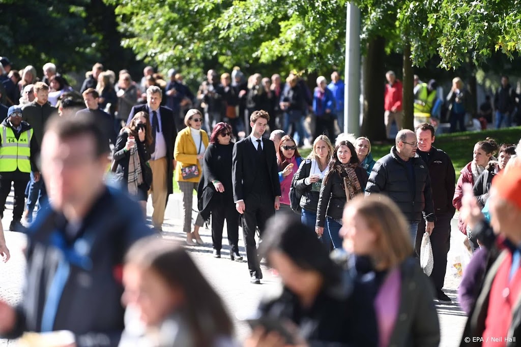 In Westminster Hall kunnen mensen langs de kist lopen en hun deelneming betuigen. Daarvoor staan duizenden mensen in de rij. Afscheid nemen kan tot maandagochtend 06.30 uur, de dag van de staatsbegrafenis.