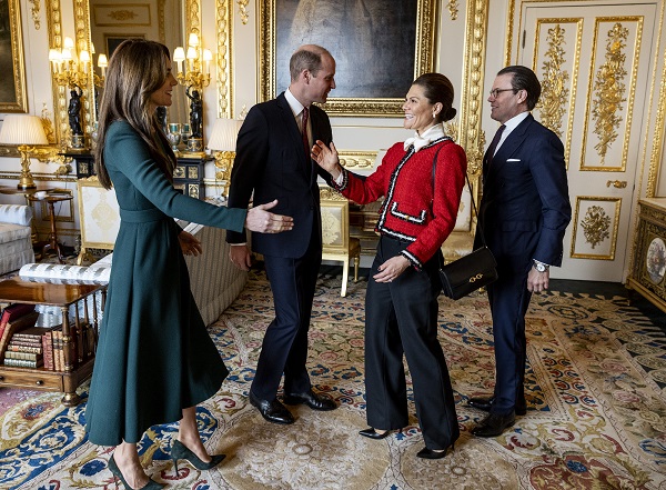 LONDON, UNITED KINGDOM 20231130 Crown Princess Victoria and Prince Daniel together with Prince William of Wales and Princess Catherine of Wales during Thursday’s visit to Windsor Castle. Photo: Christine Olsson / TT / Code 10430