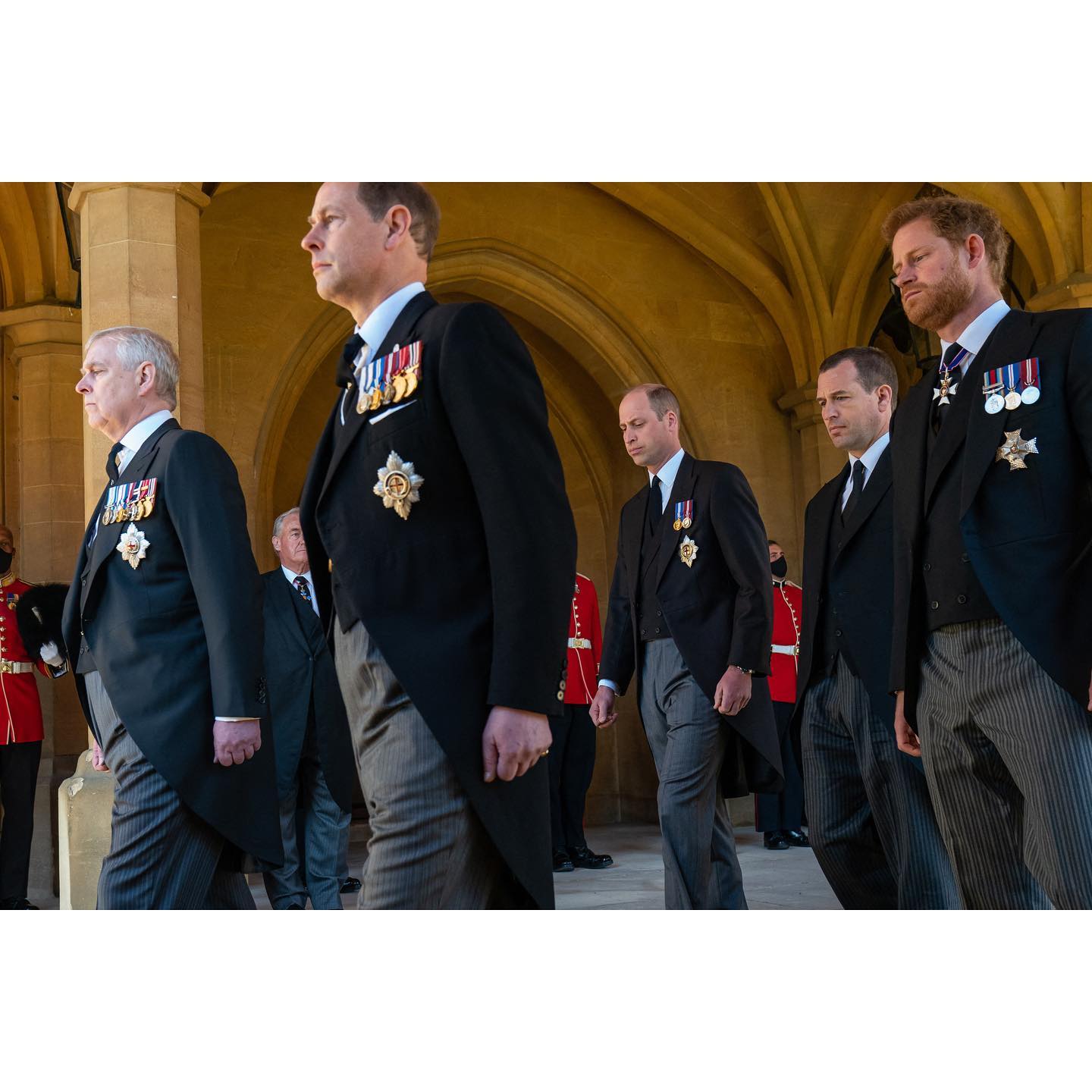 De uitvaart van hun opa Philip was de eerste keer sinds een jaar dat William en Harry elkaar weer zagen. De broers liepen zaterdag niet naast elkaar tijdens de wandeling naar St. George’s Chapel waar de uitvaart van prins Philip plaatsvond. De twee broers, die uit elkaar zijn gegroeid, werden in de stoet achter de kist gescheiden door hun neef Peter Phillips, het oudste kind van prinses Anne.