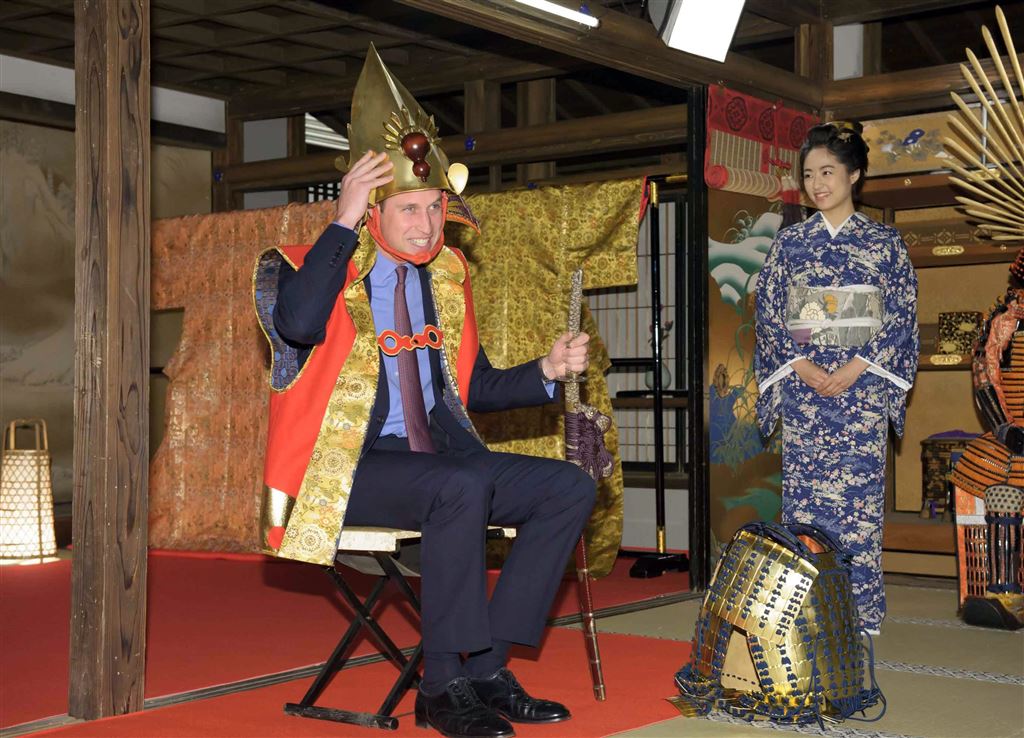 William bezocht vervolgens de studio waar een populaire Japanse historische dramaserie wordt opgenomen. De prins kreeg wat kledingattributen aangemeten van een samoerai, een Japanse krijger uit voorbije eeuwen. De bijbehorende pruik zette hij niet op. “Als ik dat doe, dan plaagt mijn broer me daarmee voor de rest van mijn leven”, aldus William, die van één van actrices speelgoed cadeau kreeg voor zoontje prins George.