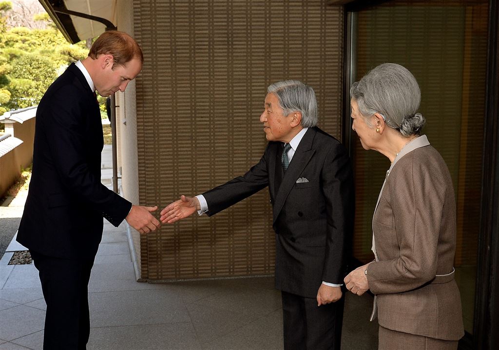 Prins William, die voor het eerst een bezoek brengt aan Japan, werd ontvangen in het keizerlijk paleis in Tokio. Daar genoot hij samen met het keizerlijk paar van een lunch. William ontmoette de keizer en de keizerin al eerder: in 2012 kwam het keizerlijk echtpaar namelijk naar Londen voor een bezoek.