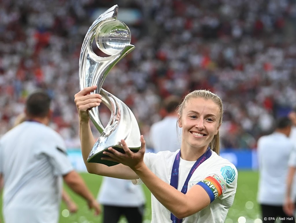 In de EK-finale op Wembley won Engeland, onder leiding van de Nederlandse bondscoach Sarina Wiegman, na verlenging met 2-1 van Duitsland. Chloe Kelly maakte in de 110e minuut de winnende goal nadat Ella Toone (1-0) en Lina Magull (1-1) in de reguliere speeltijd hadden gescoord.