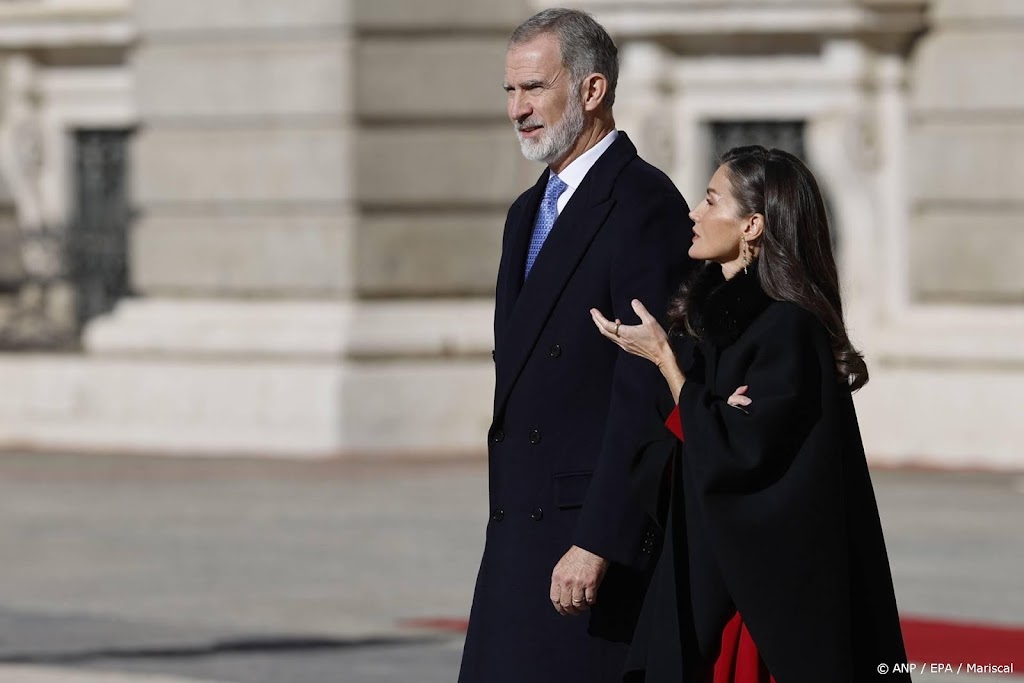 De Spaanse koning Felipe en koningin Letizia hebben vrijdag hun traditionele nieuwjaarsreceptie gehouden voor buitenlandse diplomaten. Op het koninklijk paleis in Madrid kwamen honderden genodigden langs.
