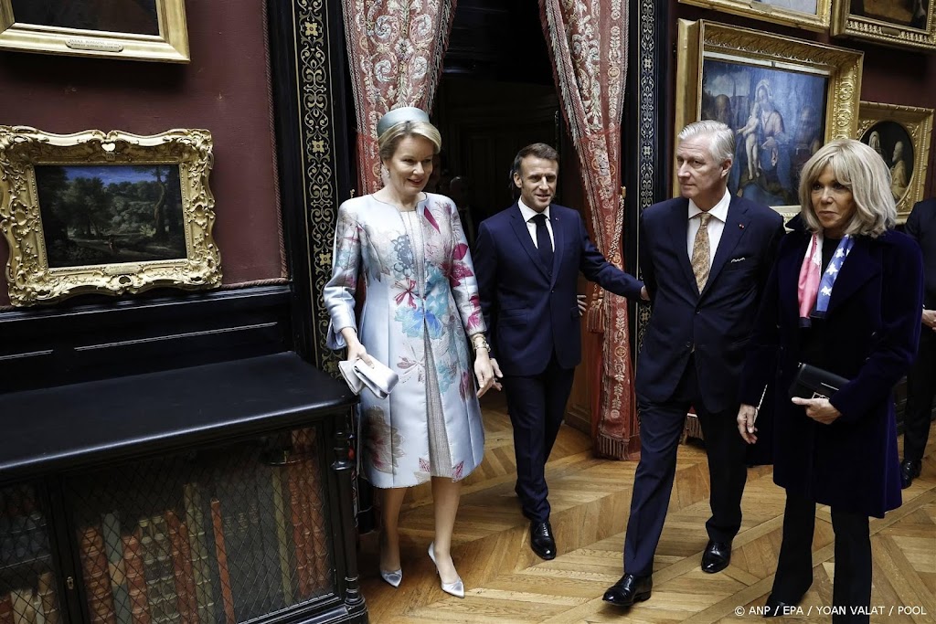 Op de beelden zijn ook onder anderen de Franse president Emmanuel Macron en zijn vrouw Brigitte te zien, die zich eveneens lieten bijpraten over de geschiedenis van de “moeder van de Belgische Dynastie”.