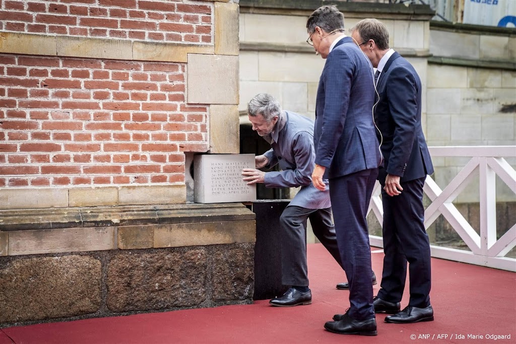 De Deense koning Frederik heeft donderdag het startsein gegeven voor de herbouw van de door brand verwoeste Børsen in Kopenhagen. De vorst deed dat door symbolisch een nieuwe hoeksteen van 60 kilo in het metselwerk van het voormalige beursgebouw te schuiven.
