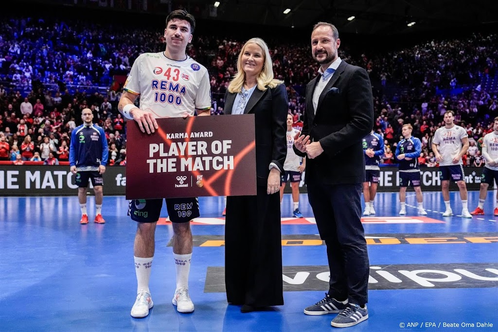 De Noorse kroonprins Haakon en kroonprinses Mette-Marit hebben hun landgenoot, handbalspeler Simen Lyse, de prijs voor man van de wedstrijd uitgereikt. Het kroonprinselijk paar was zondag aanwezig bij een WK-wedstrijd van de Noorse handbalploeg tegen Portugal.