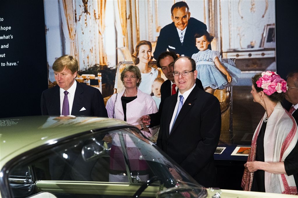 De prins, voor een tweedaags officieel bezoek in Nederland, nam koning Willem-Alexander mee voor een rondleiding door de expositievleugel van het paleis, waar de bij filmstudio MGM ontworpen en gemaakte trouwjurk van Grace een van de topstukken is. Er zijn filmposters, uitnodigingen voor de Oscar-uitreiking, en filmclips van de Hollywood-loopbaan van de in Philadelphia geboren Grace Kelly.