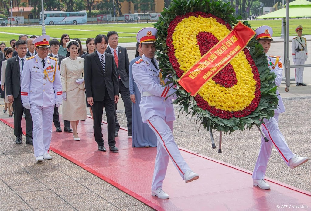 De Japanse kroonprins Akishino en zijn vrouw prinses Kiko zijn donderdag aangekomen in de Vietnamese hoofdstad Hanoi. Het paar legde op de tweede dag van hun bezoek aan Vietnam onder meer een krans bij het mausoleum van de vroegere president Ho Chi Minh.