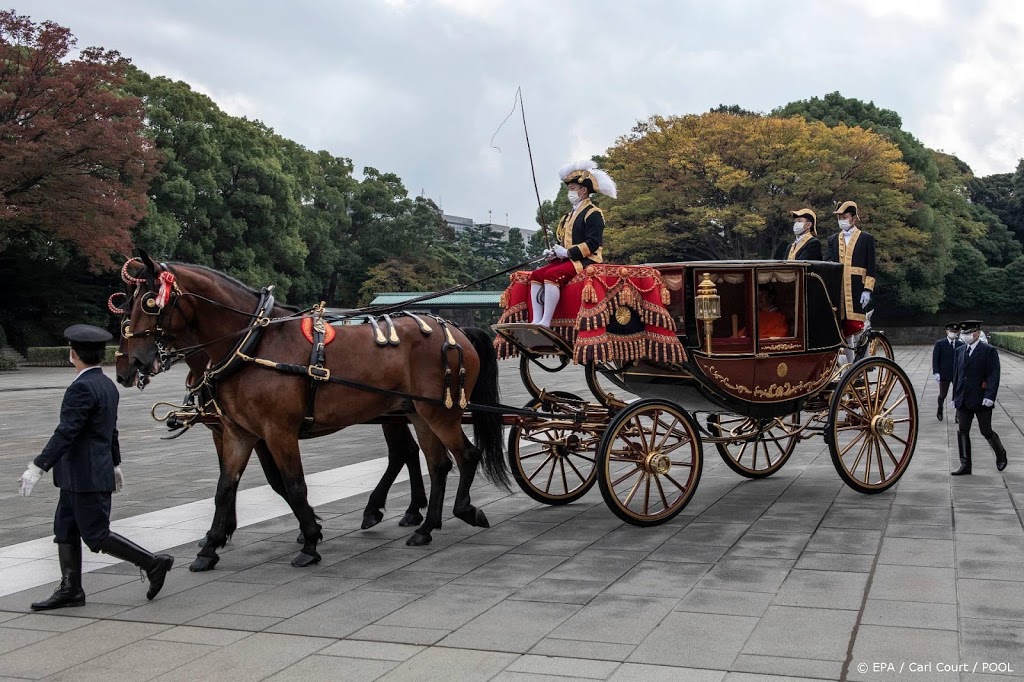 De ontvangst vormde de afsluiting van de uit twee onderdelen bestaande ‘Rikkoshi-no-Rei-ceremonie’, de lang verwachte installatie of inhuldiging van de kroonprins. Die had oorspronkelijk al in april moeten plaatsvinden, maar vanwege de coronacrisis is toen besloten tot uitstel. De plechtigheden waren ook uitgekleed: zo was er zondag geen banket en was het aantal genodigden in het Keizerlijk Paleis beperkt.