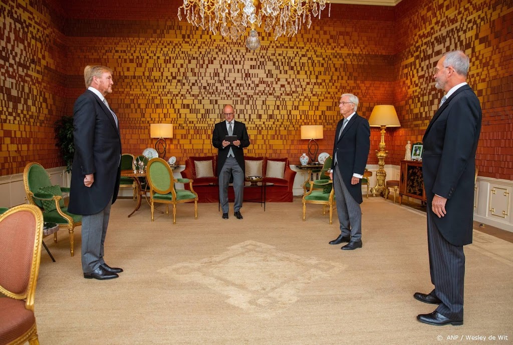 Henk Kamp (VVD) en Ben Knapen (CDA) zijn vrijdag aan de slag gegaan in het demissionaire kabinet. Dat deden ze na op Paleis Huis ten Bosch te zijn beëdigd door koning Willem-Alexander.