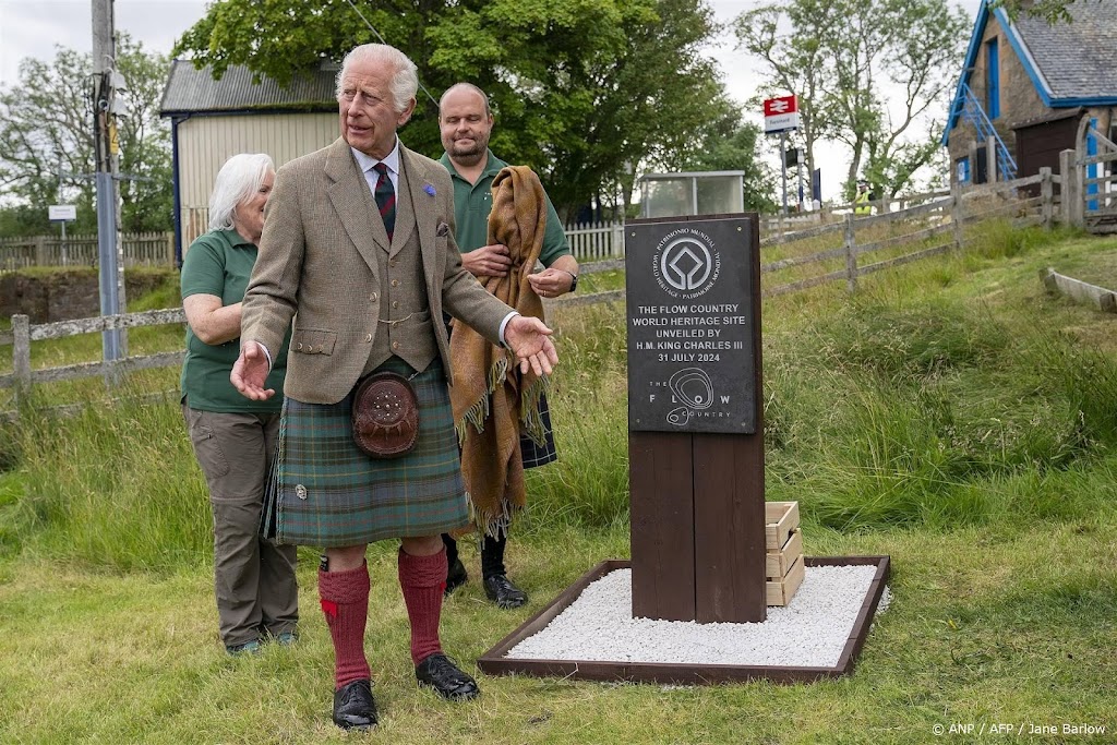 Koning Charles heeft woensdag een bezoek gebracht aan een plaatsje in Schotland dat ligt in het moerasgebied Flow Country. Het gebied staat sinds kort op de werelderfgoedlijst van UNESCO.