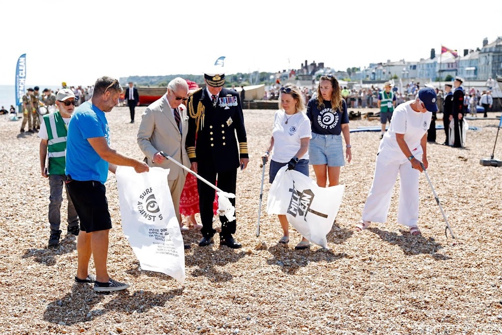 Koning Charles heeft donderdagmiddag afval geraapt op het strand van Deal, in het zuidoosten van Engeland. De opruimactie was een initiatief van de lokale milieuorganisatie Deal With It.