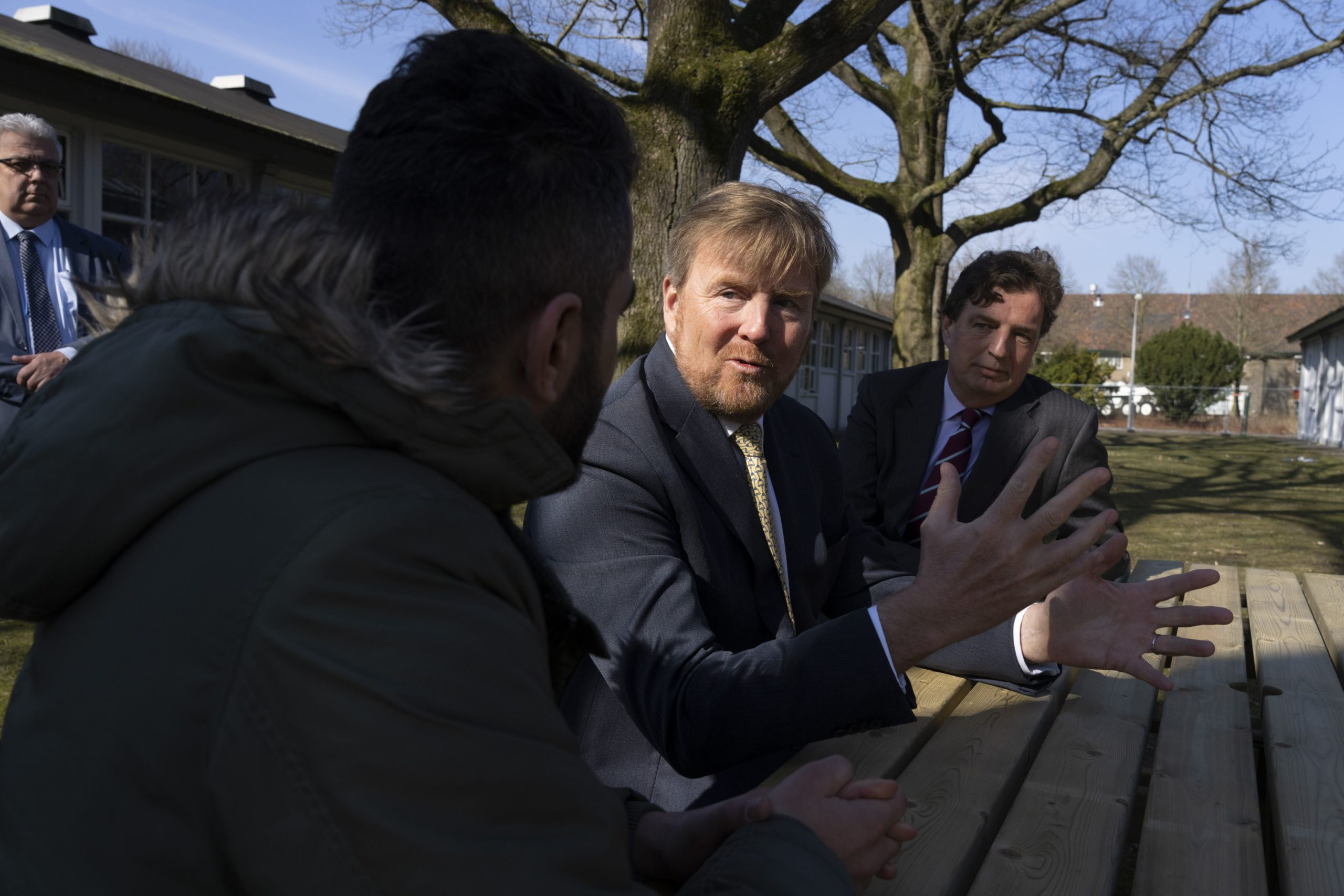 Het koninklijk paar bezocht ook de barakken waarin de vluchtelingen verblijven. Het paar is ruim anderhalf uur op de legerplaats geweest.