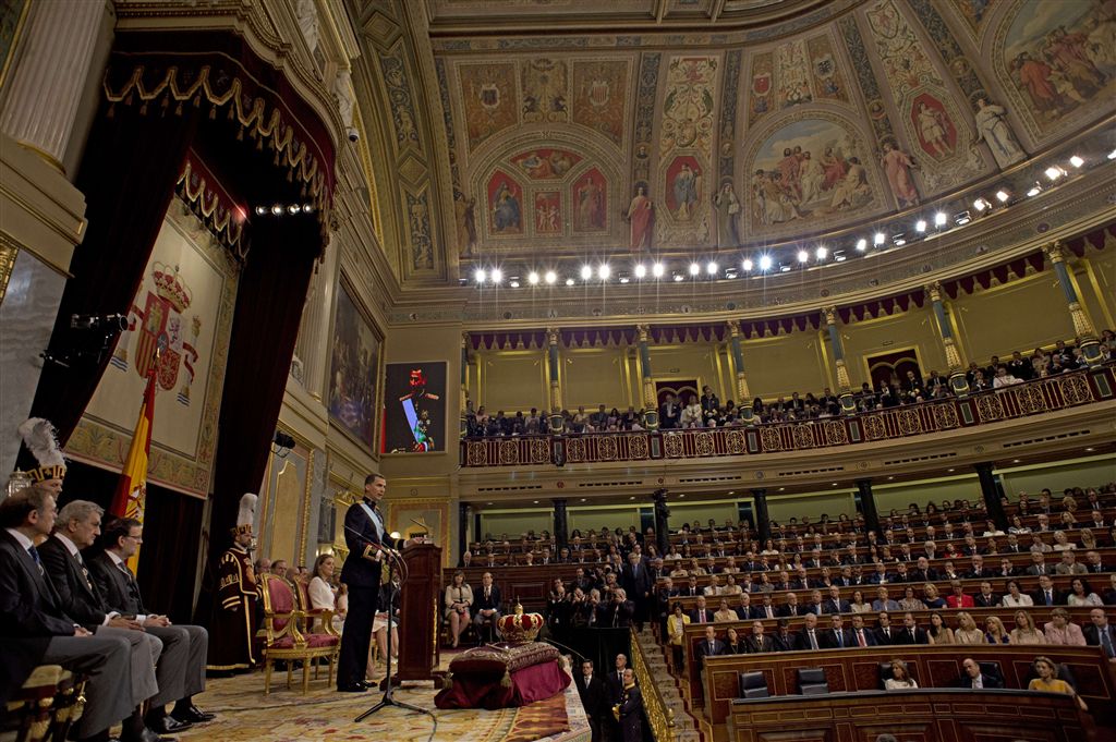 Koning Felipe verklaarde vervolgens dat hij de plichten wil uitvoeren die de grondwet hem schenkt en zich daaraan wil houden. ”Ik wil een koning zijn die de scheiding der machten respecteert. Ik wil een staatshoofd zijn dat bereid is te luisteren en op te komen voor het algemeen belang.” Ook benadrukte Felipe dat hij de cohesie tussen Spanjaarden als essentiële politieke waarde ziet, maar ook transparantie van het koningshuis. ”De kroon moet dichter bij de mensen komen en de samenleving dienen.”