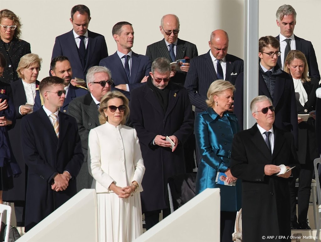 Een groot deel van de gelovige Belgische koninklijke familie woont de dienst bij van de paus in het Brusselse Koning Boudewijnstadion. Onder anderen koning Filip, koningin Mathilde, prinses Eléonore, koning Albert en koningin Paola zijn bij de eucharistieviering aanwezig.