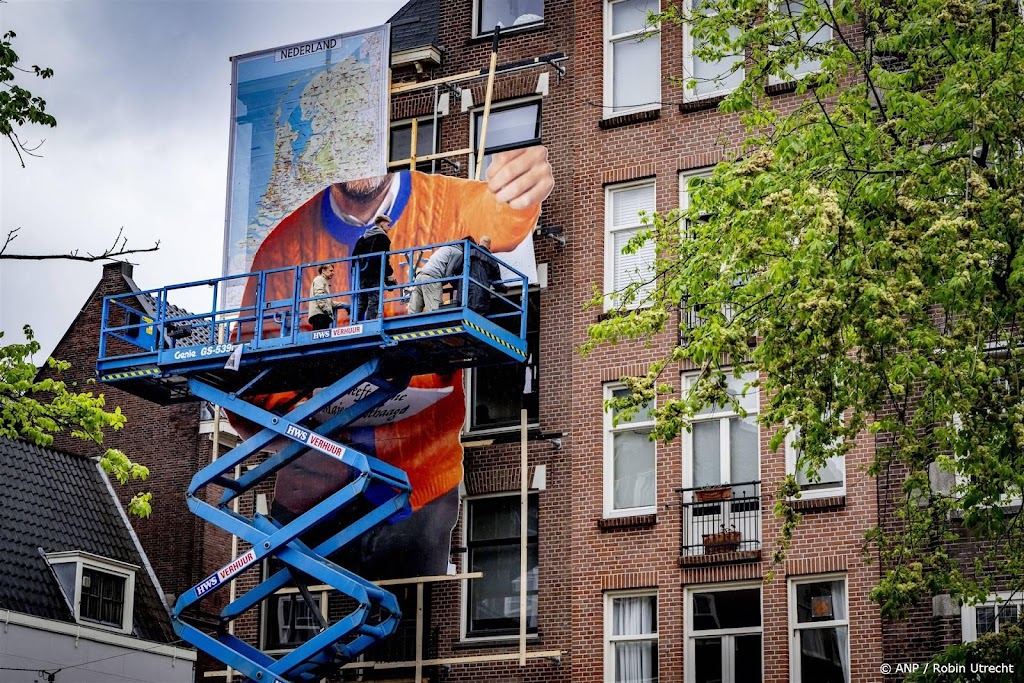 Het doek wordt met Koningsnacht om twaalf uur onthuld. Maar verschillende mensen maakten tijdens de opbouw een foto en deelden die vrijdag al op sociale media. Dat deed ook Eric van der Burg, als staatssecretaris van Justitie en Veiligheid voor Faber verantwoordelijk voor asiel en migratie. Faber wil de onder hem aangenomen Spreidingswet afschaffen. Bij de foto schrijft de VVD’er onder meer dat het megadoek een waardering is “voor eenieder die zich inzet voor Nederland met een vleugje actuele politiek”.