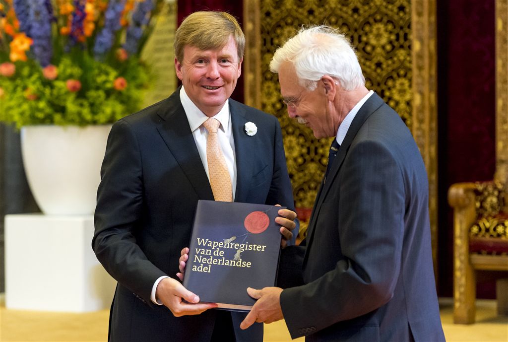 DEN HAAG – Koning Willem-Alexander was maandagmiddag in de Ridderzaal in Den Haag aanwezig bij de viering van 200 jaar Hoge Raad van Adel. Hij nam er het eerste exemplaar van het jubileumboek Wapenregister van de Nederlandse Adel in ontvangst uit handen van Coen Baron Schimmelpenninck van der Oije.