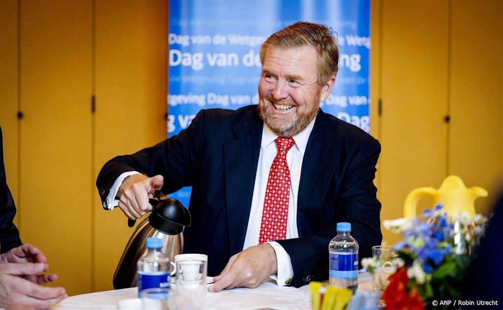 Koning Willem-Alexander sprak na de opening met wetgevingsjuristen en betrokkenen bij het voorbereiden van wetgeving.