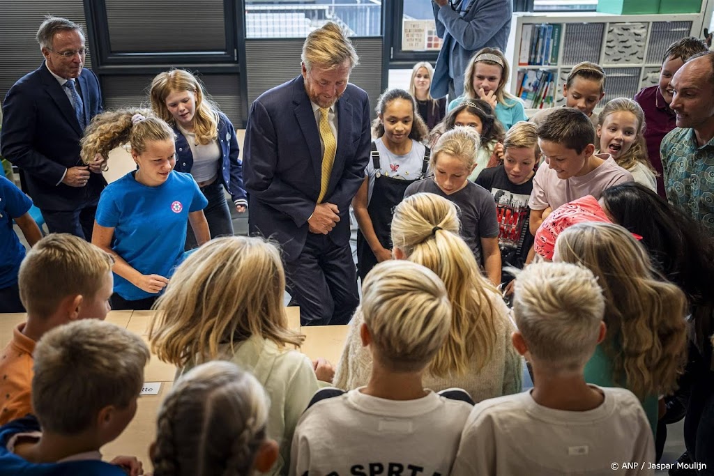 Koning Willem-Alexander heeft dinsdag een bezoek gebracht aan een basisschool in het Groningse Ten Boer. Daar praatte de vorst met kinderen uit groep 8 over de ervaringen met aardbevingen in het gebied als gevolg van gaswinning.