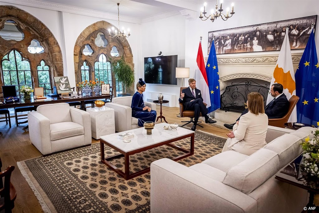 Koningin Máxima heeft dinsdag tijdens de welkomstceremonie voor het staatsbezoek aan Cyprus traditioneel zilveren edelsmeedwerk ontvangen. De vaatjes, die vroeger werden gebruikt om via rook lekkere geuren te verspreiden bij speciale gelegenheden, zijn een van de symbolische geschenken die bij aanvang van het staatsbezoek zijn uitgewisseld met het gastland.
