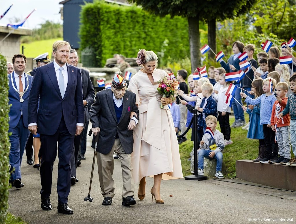 Koning Willem-Alexander en koningin Máxima zijn gearriveerd in Mesch, waar het herdenkingsjaar 80 jaar vrijheid van start gaat. Dat Zuid-Limburgse dorp werd op 12 september 1944 als eerste Nederlandse plaats bevrijd. Het koningspaar kwam samen met de Amerikaanse veteraan Kenneth Thayer (99) aan in een legervoertuig. Koningin Máxima begeleidde de veteraan vervolgens naar de tribune voor de ceremonie.