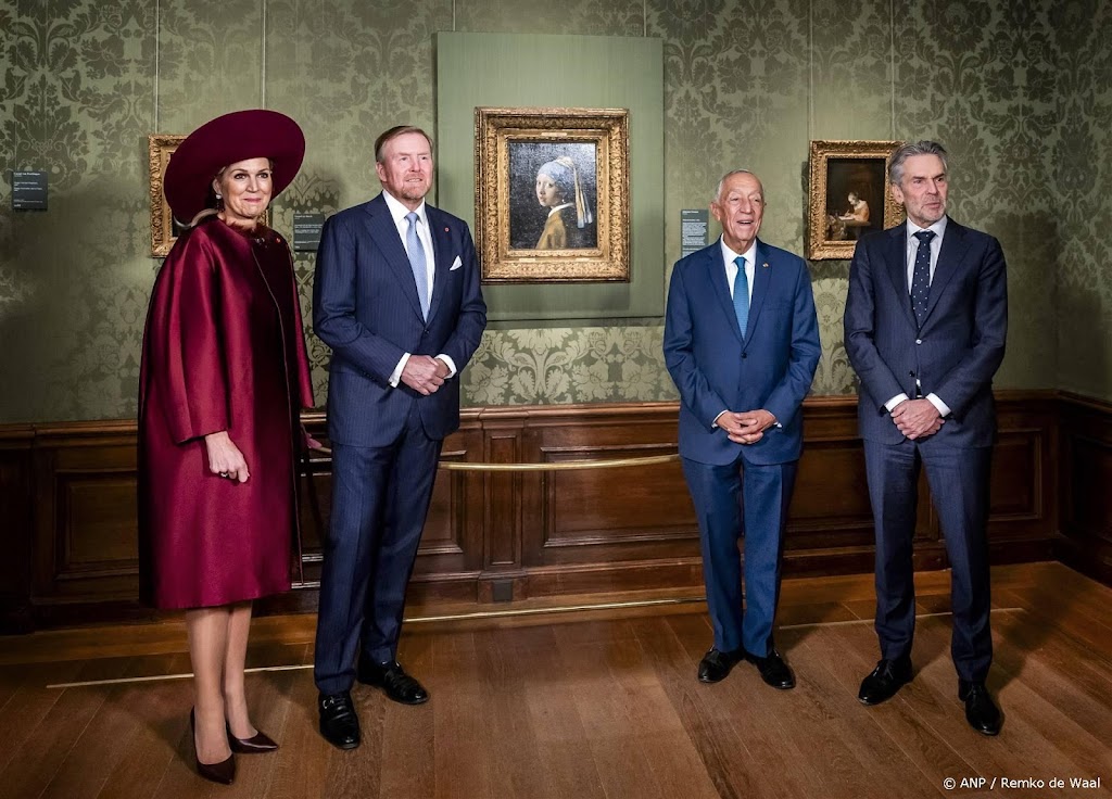 Koning Willem-Alexander en koningin Máxima hebben woensdag samen met de Portugese president Marcelo Rebelo de Sousa het Mauritshuis bezocht. Op beelden is te zien dat het koningspaar en De Sousa samen met premier Dick Schoof poseren voor het schilderij Meisje met de parel. De koning en koningin woonden ook een regeringslunch bij in het Mauritshuis.