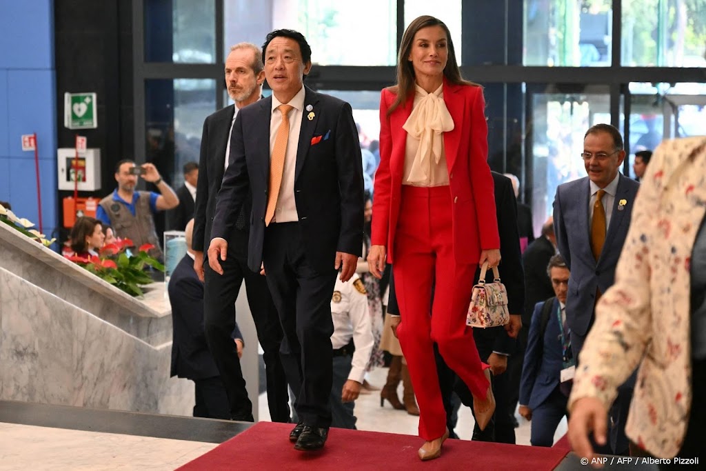 De koningin werd welkomgeheten door Qu Dongyu, de directeur van de Food and Agriculture Organization van de Verenigde Naties (FAO). Letizia is sinds 2015 ambassadeur van de FAO, die dit jaar ook haar tachtigjarige bestaan viert. Naast de koningin en de paus waren ook de Italiaanse premier Giorgia Meloni en de koning van Lesotho aanwezig.