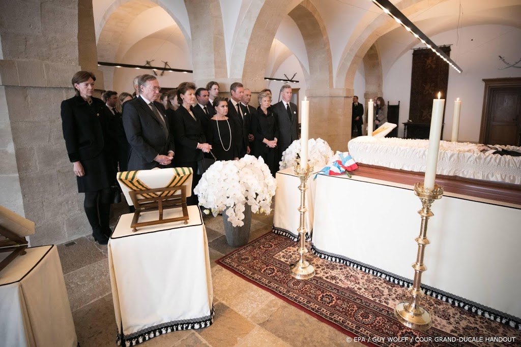 Het hof verspreidde aan het einde van de middag een opname van de rouwkapel, waar de hele familie zich had verzameld. Op de eerste rij de vijf kinderen van Jean, daarachter met hun partners en het erfgroothertogelijk paar en daar weer achter de overige kleinkinderen.