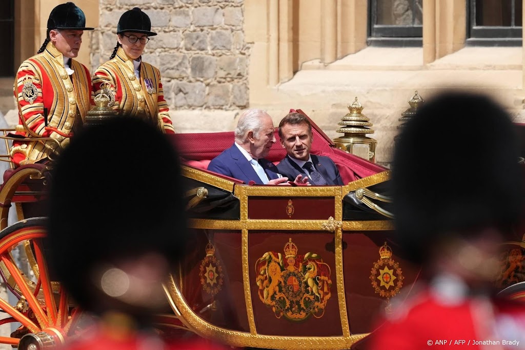 Op de binnenplaats van Windsor Castle, de zogeheten quadrangle van het paleis, vond een militaire ceremonie plaats. Macron inspecteerde daarna samen met koning Charles de wacht. Later dinsdag vindt een staatsbanket plaats.