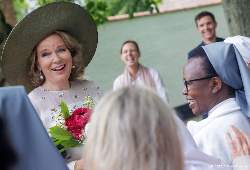 Mathilde sprak ook met een aantal bewoners van het hof en bezocht daarna de boomgaard van de priorij die voor het eerst werd opengesteld, aldus het Belgische hof.