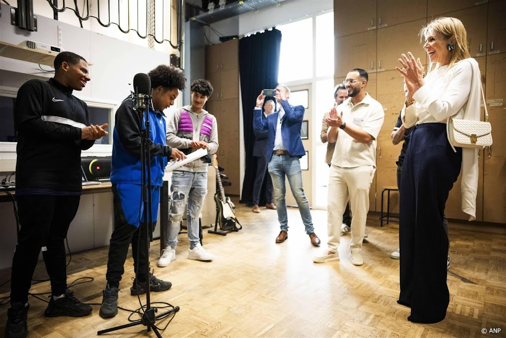 Eenmaal bij de muziekworkshop wordt door de leerlingen opgemerkt dat de lessen bijdragen aan het leren van de taal voor de jongeren die nog niet zo goed Nederlands spreken. De klas praat alleen Nederlands met elkaar, vult een docent aan, wat de koningin goed vindt. De middag wordt afgesloten met een rap over mentale veerkracht. Een van de leerlingen leek een beetje zenuwachtig, maar Máxima liet weten dat ze de rap heel mooi vond. “Mooie teksten en inspirerend voor anderen.”