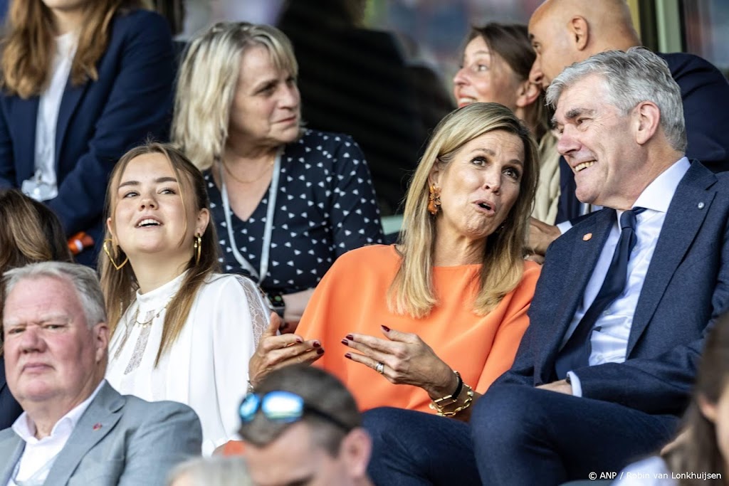 De koningin en haar jongste dochter zwaaiden lachend naar supporters in het stadion, zo was te zien voorafgaand aan de wedstrijd. Máxima en Ariane applaudisseerden nadat het Wilhelmus had geklonken en de voetbalsters op het veld hadden meegezongen met het volkslied.